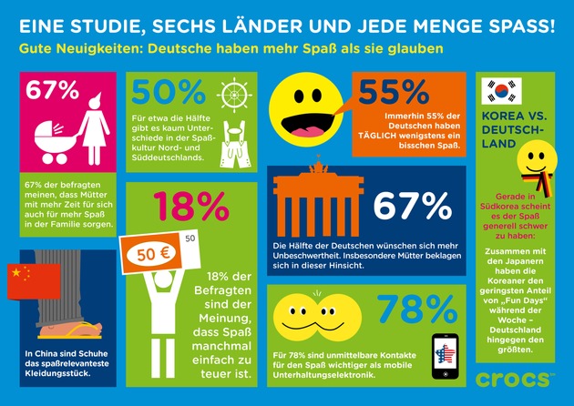 Studie von Crocs: Deutsche haben mehr Spaß als sie glauben - Ergebnisse einer internationalen Befragung zeigen, dass sich Deutschland in punkto Spaß nicht zu verstecken braucht