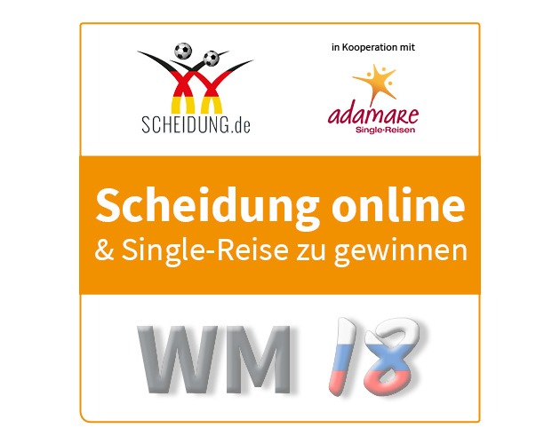 Das WM-Gewinnspiel von Scheidung.de (www.scheidung.de/gewinnspiele/wm) offeriert eine Online-Scheidung und übernimmt die gesamten Scheidungsgebühren. Für den Neustart gibt es eine schöne Single-Reise zu gewinnen.