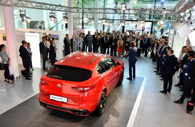 Highlight der Veranstaltung war die Enthüllung und Übergabe eines Alfa Romeo Stelvio an Eliomaria Narducci, dem Geschäftsführer der Italienischen Handelskammer für Deutschland e.V. (ITKAM). Narducci ist der erste Teilnehmer des neuen Alfa Romeo-Ambassador-Programms der Abteilung Fleet & Business Sales, bei dem Wirtschafts- und Gesellschafts-Vertreter für Alfa Romeo als Markenbotschafter fungieren. Für Narducci ein besonderer Moment: "Als Italiener in Deutschland einen Alfa Romeo zu fahren ist ein Traum - es ist nicht nur ein Auto, es ist auch ein Lebensstil."