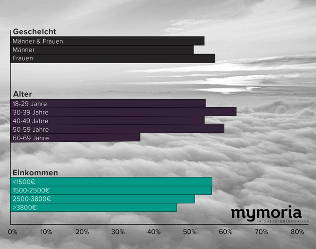 Berlin, 15. November 2016 - Im Auftrag von Mymoria, dem ersten Online-Anbieter für komplette Bestattungen und Vorsorge, hat das Marktforschungsunternehmen Innofact 1026 Deutsche repräsentativ befragt, welche Vorbereitungen sie für ihre eigene Bestattung vorgenommen haben.