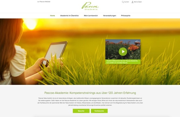 "Auch Fachkreise kommen auf ihre Kosten: Ein besonderer, DocCheck-geschützter Bereich hält Angebote bereit, die auf die speziellen Bedürfnisse von Ärzten, Heilpraktikern und weiteren Fachkreisangehörigen ausgerichtet sind", erläutert Annette Pascoe. "Experten aus Forschung und Praxis geben ihren Kolleginnen und Kollegen den großen Wissensschatz weiter." Besuchen Sie die Pascoe Akademie unter www.pascoe-akademie.de und werden Sie kompetenter Ratgeber in Sachen Naturmedizin.