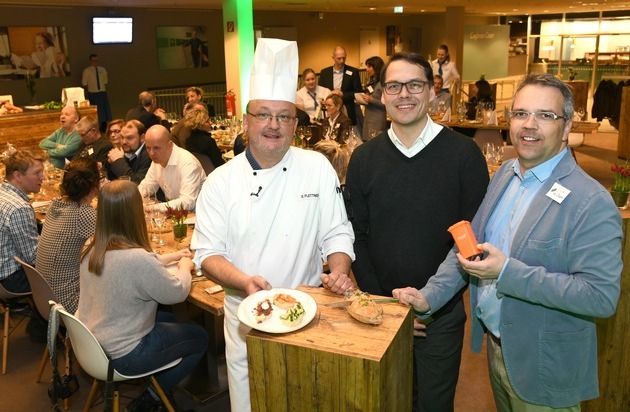 Küchenchef Dominik Flettner: "Wir sensibilisieren und schulen nicht nur laufend unser Küchenteam, sondern mit unserem gleichermaßen schmackhaften wie unterhaltsamen Resteessen auch unsere Dienstleister, Geschäftspartner und Vertreter aus Politik und Verwaltung." Davon konnten sich gestern Abend rund 40 geladene Gäste überzeugen und lernten das Engagement von Flettner und seinem Team Gang für Gang kennen. Fachliche Unterstützung lieferte Torsten von Borstel, United Against Waste e.V., der mit seinem bundesweit tätigen Verein Lösungen zur Vermeidung von Lebensmittelverschwendung entwickelt. Von Borstel steuerte jede Menge aufschlussreiche Fakten bei, die sich bei einem köstlichen mehrgängigen Menü auf unterhaltsame Weise verdauen ließen.