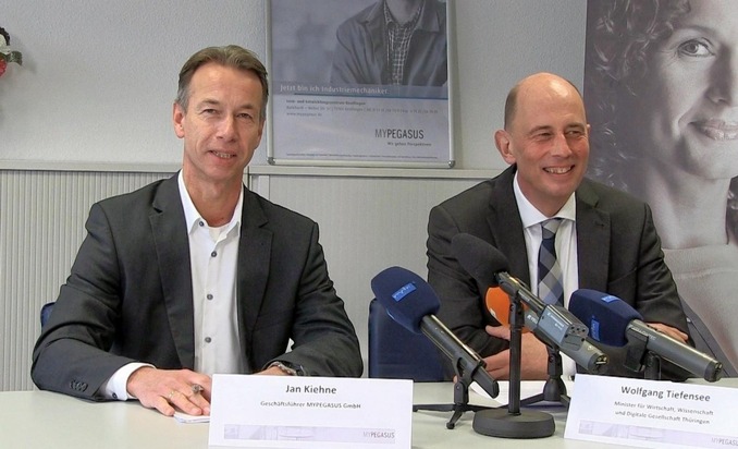 Es waren erfreuliche Zahlen, die MYPEGASUS Geschäftsführer Jan Kiehne bei der gestrigen Pressekonferenz zur Transfergesellschaft Solarworld berichten konnte. Knapp die Hälfte der 480 Beschäftigten sind mittlerweile wieder in Lohn und Brot. Und das, obwohl die Transfergesellschaft in Arnstadt erst am Mitte August diesen Jahres ihre Arbeit aufnahm. Eine Leistung, der auch der anwesende Thüringer Wirtschaftsminister Wolfgang Tiefensee Anerkennung zollte. "Arbeitsplatzverlust gehört zu den schlimmsten Erfahrungen, die ein Mensch machen kann", so der Minister. Umso positiver sei es deshalb, dass es den Beteiligten - Politik, Insolvenzverwalter, IG Metall und Betriebsräten - gelungen sei, eine Transferlösung zu ermöglichen. Diese biete den Mitarbeitern professionelle Unterstützung in einer existenzbedrohenden Situation. Die Betroffenen seien motiviert und gut qualifiziert. Auch sei der Arbeitsmarkt in Thüringen aufnahmefähig, so Minister Tiefensee. Die wirtschaftlichen Rahmendaten im Bundesland stimmten.
