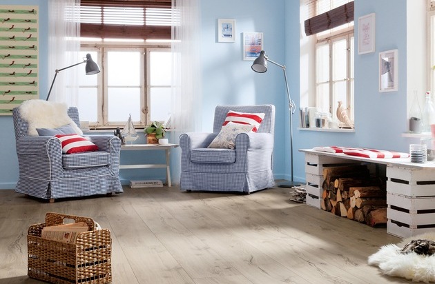 (tdx) Strapazierfähig und in den unterschiedlichsten Dekoren erhältlich steht Laminat klassischen Parkettböden an Beliebtheit in nichts nach. Erlaubt ist, was gefällt. Vor allem helle Holzdesigns wie Esche und Eiche oder rustikale Vintage-Looks, die sich dank strukturierter Oberfläche sogar so anfühlen wie sie aussehen, werden aktuell besonders gern gekauft. Neben Holzdesigns sind Laminatböden heute auch in Fliesenoptik sowie Beton-, Stein- oder Terrakotta-Dekoren erhältlich. Mithilfe des Digitaldrucks können Farben und Muster nahezu beliebig auf die Dekorschicht gedruckt werden. Spezielle Fabrikate lassen sich sogar im Badezimmer verwenden, da Oberfläche und Fugen wasserfest sind.