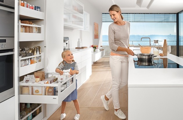 Eine Vielzahl weiterer Stauraumideen gibt's unter https://www.blum.com/ideas.