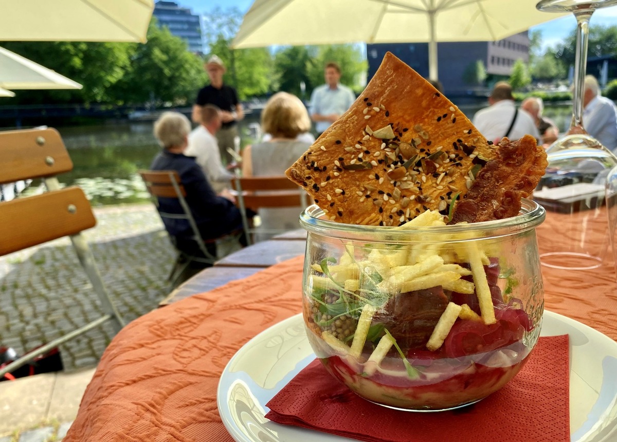 Den Verantwortlichen der Wein Villa hat die Rezeptidee ebenfalls gut gefallen: „Mit diesem innovativen Gericht, das auch nach wissenschaftlichen Gesichtspunkten wunderbar auf unser Weinsortiment abgestimmt ist, können wir unseren Besuchern einen echten Mehrwert bieten“, freut sich Daniel Drautz von der Genossenschaftskellerei Heilbronn. Und so hat es das Gericht auf die Karte des Weinpavillons an der Neckarbühne geschafft. Es wird einige Wochen lang angeboten, danach übernehmen die Kommiliton*innen von Petras und Hinkelmann: „Seien Sie gespannt, welche Kreation als nächste neu auf der Kreidetafel vor dem Eingang stehen wird – denn das verraten wir erst später …“