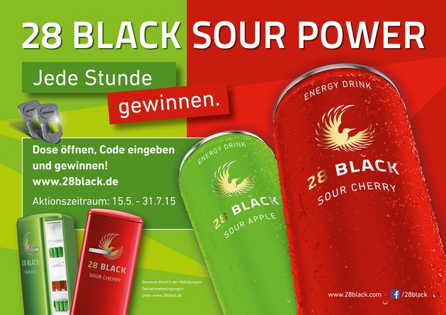 Das Gewinnspiel und die neuen Sour-Sorten Apple und Cherry werden dem Verbraucher über eine reichweitenstarke Media-Kampagne bekannt gemacht. Dazu gehören TV-Werbung, Anzeigenschaltungen, eine eigene Aktionsseite unter www.28black.de und Social Media-Aktivitäten. Direkt am POS aktiviert 28 BLACK die Aktion über Außenwerbung mit Riesenpostern und farbenfrohe Displays in den Sour-Farben Rot und Grün.