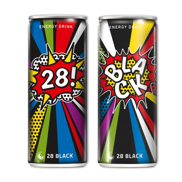 Auffallend. Kreativ. Neu. Die erste Limited Edition von 28 BLACK mit knalligen Farben im Pop Art Look ist ein absolutes Must-have. Zwei Motive, die nebeneinander gestellt den Markennamen 28 BLACK ergeben, sind ab 05. April nur für kurze Zeit und in limitierter Auflage im Handel erhältlich. In den Dosen - die Lieblingssorte der 28 BLACK Fans: Açaí. Und weil das so gut schmeckt, ist in der Edition Dose auch gleich mehr davon drin, nämlich 330 ml statt der üblichen 250 ml. Und wie immer fruchtig, ohne Taurin, vegan, gluten- und laktosefrei.