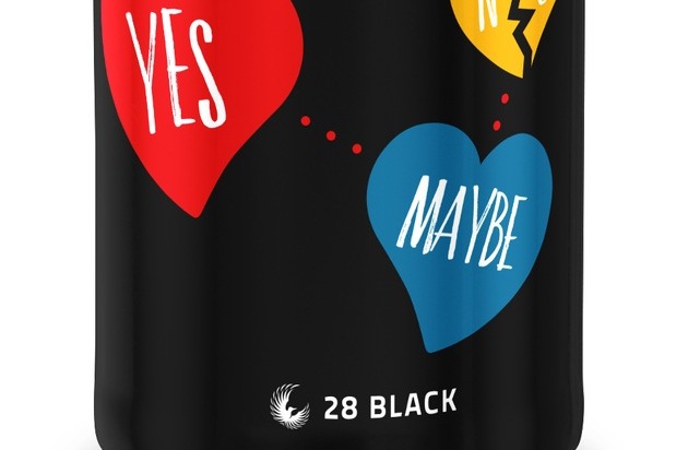 Wer am Valentinstag ein Herz erobern will, doch noch nicht so richtig weiß, wie er es angehen soll, der bekommt in diesem Jahr Unterstützung von Energy Drink 28 BLACK. Die alles entscheidende Frage "Will you be my valentine?" wurde zum Thema der 28 BLACK Valentins-Edition gemacht. Und damit der oder die Auserwählte vor Aufregung oder Verlegenheit nicht ins Stottern gerät, sind die passenden Antwortmöglichkeiten gleich mit auf der Dose. Heartbreaker, Date-Maker - mit den 28 BLACK Valentins-Dosen sollte am 14. Februar nichts schief gehen.