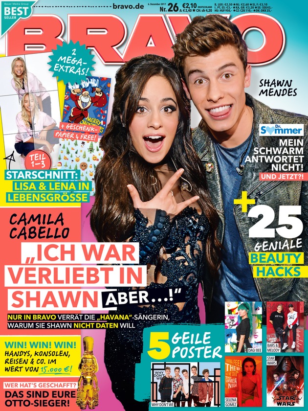Das aktuelle Titelcover der BRAVO und der neue BRAVO-Starschnitt mit Musical.ly-Stars Lisa & Lena können als Bilddatei unter katrin.hienzsch@bauermedia.com angefordert werden. Die Veröffentlichung ist nur bei Nennung der Quelle "BRAVO" frei.
