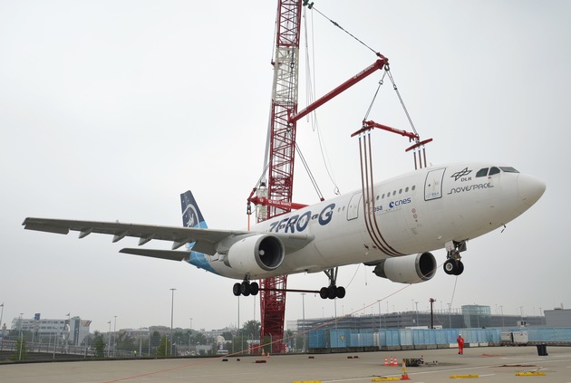 Daten: Schwerlastkran Liebherr LR 1.600 Dauer des Aufbaus: 5 Tage Anlieferung auf 35 Lkw Tragkraft: 600 t Eigengewicht: 700 t Hubhöhe der am Airport eingesetzten Variante: 59 m Länge Ausleger: 66 m Airbus A300 Zero G Länge: 53,61 m Spannweite: 44,84 m Höhe Rumpf: 7,5 m Höhe Heckflosse: 16,5 m Gewicht: 80 t