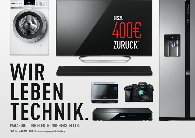 Mit einer breit angelegten Cashback-Aktion für 4K VIERA TVs, Heimkino-Produkte, LUMIX G Systemkameras und Haushaltsgeräte schafft Panasonic zusätzliche Kaufanreize und unterstützt so den Fachhandel im Weihnachtsgeschäft. Bis zu 400 Euro erhält der Endkunde beim Kauf ausgewählter Produkte in Deutschland oder Österreich zurück. Während des gesamten Aktionszeitraums unterstützt Panasonic den Handel mit einer reichweitenstarken Werbekampagne. Durch gezielte und kreative Marketingmaßnahmen werden bis zu 600 Millionen Kontakte erreicht.