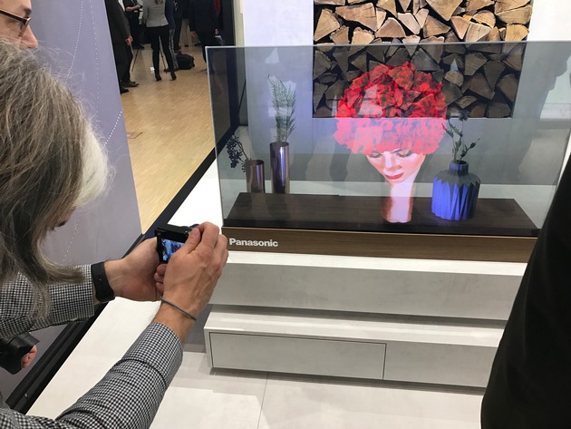 Glasscheibe oder High-End TV? Auf Knopfdruck wird aus einer Glasscheibe im Wohnzimmerschrank ein OLED TV mit 4K Auflösung. Der Prototyp auf dem Panasonic Stand in Halle 5.2 zeigt bereits heute, welche Möglichkeiten "intelligentes Glas" bietet. Denn neben der Anwendung im Wohnzimmer plant Panasonic auch eine Vielzahl von Anwendungsbeispielen im öffentlichen Raum.