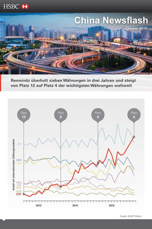 "Die Tatsache, dass der Renminbi immer stärker für grenzüberschreitenden Handel und Investments genutzt wird, beweist, dass seine positive Entwicklung nicht nur von Chinas einheimischem Markt getrieben ist. Der RMB ist auf dem besten Weg, sich fest in der Weltwirtschaft zu etablieren.", sagt Gabriele Schnell, Head of Payments and Cash Management bei HSBC Deutschland.