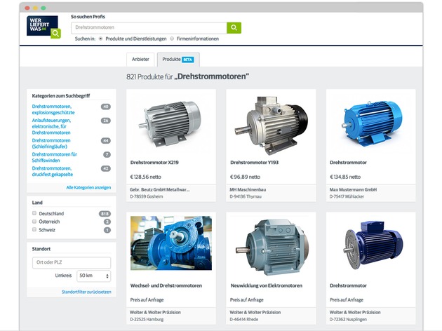 Im Mittelpunkt der Suche professioneller Einkäufer stehen konkrete Produkte, die den jeweiligen Anforderungen entsprechen müssen. Deshalb vollzieht die in Deutschland, Österreich und der Schweiz führende Anbietersuche "Wer liefert was" nun einen entscheidenden Schritt für die gesamte Branche: Ab sofort kann jeder Suchende für bestimmte Suchbegriffe nicht nur die Kontaktdaten eines passenden Anbieters, sondern auch über Produktbilder, Produktdetails, Preisangaben, Lieferzeiten sowie Verfügbarkeiten die entsprechenden Firmen finden. "Bis Ende 2015 werden wir bereits über drei Millionen Produkte mit umfassenden Präsentationen auf unserer Plattform haben", verspricht Peter F. Schmid, CEO von "Wer liefert was".