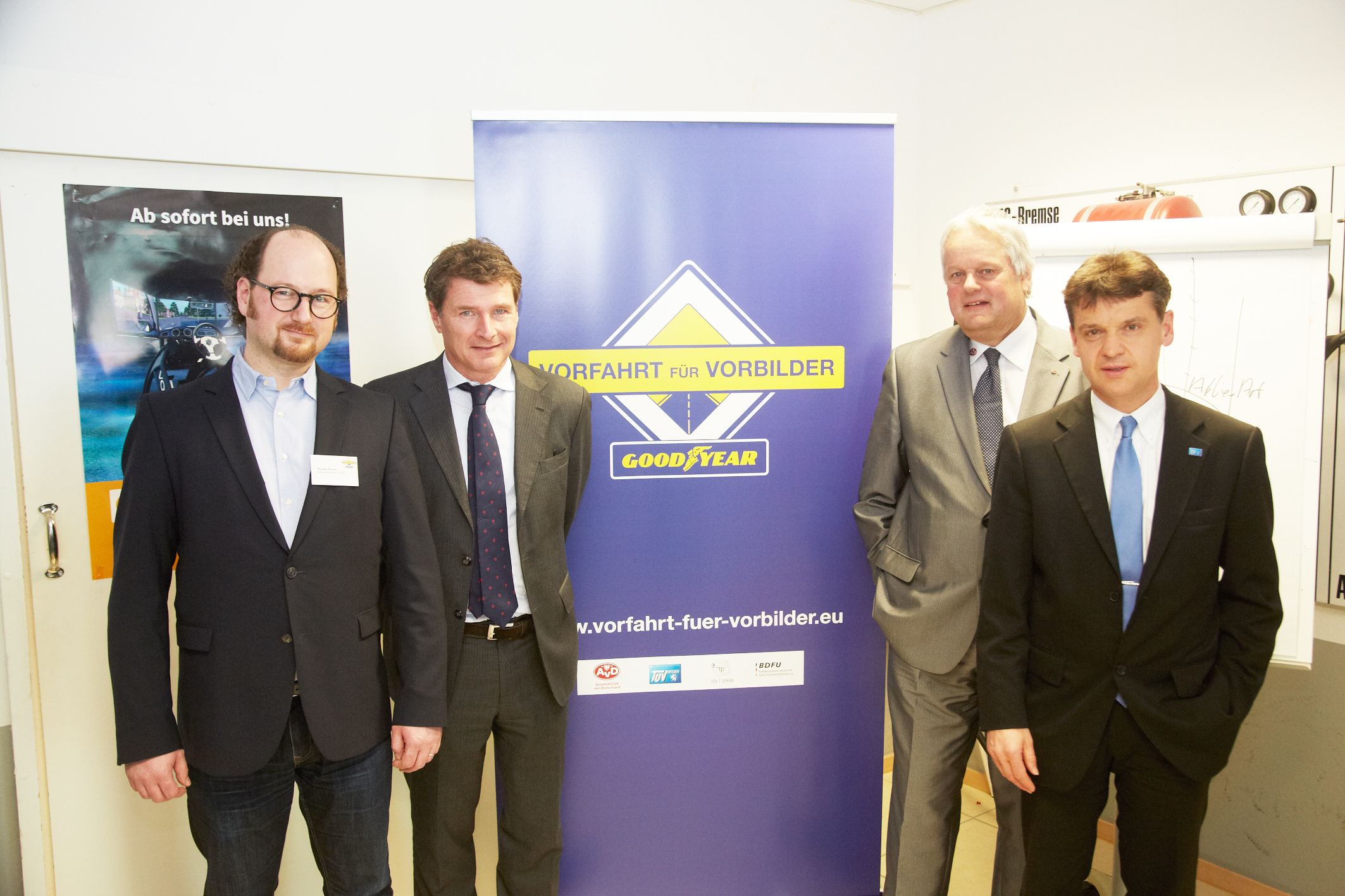 Unter dem Motto "Vorfahrt für Vorbilder" startet Goodyear gemeinsam mit dem Automobilclub von Deutschland (AvD), dem TÜV Hessen, der TÜV | DEKRA arge tp 21 und dem Bundesverband Deutscher Fahrschulunternehmen (BDFU) eine neue Initiative zur Verbesserung der Verkehrssicherheit von Fahranfängern. Hintergrund sind die Ergebnisse einer repräsentativen Goodyear-Studie aus dem vergangenen Jahr. Danach werden viele Eltern als Autofahrer ihrer Vorbildfunktion gegenüber ihren Kindern durch Fehlverhalten am Steuer nicht gerecht. Deshalb lädt Goodyear mit seinen Partnern jetzt alle Eltern, aber auch alle anderen Autofahrer, zur Teilnahme an einem von Verkehrsexperten eigens für die Online-Initiative entwickelten Vorbild-Selbst-Check ein. Unter www.vorfahrt-fuer-vorbilder.eu können die Teilnehmer prüfen, inwieweit sie Vorbilder im Straßenverkehr sind. Gleichzeitig besteht hier die Möglichkeit, die aktuelle theoretische Führerscheinprüfung der Klasse B versuchsweise zu absolvieren. Die Aktivierung der Initiative erfolgt hauptsächlich über Social Media, aber auch über weitere Kanäle - darunter lokale Gesprächsrunden. Im Rahmen einer Auftaktveranstaltung in einer Hanauer Fahrschule wurde die Kampagne am heutigen Dienstag vorgestellt. Goodyear engagiert sich bereits seit mehreren Jahren für die Verbesserung der Verkehrssicherheit.