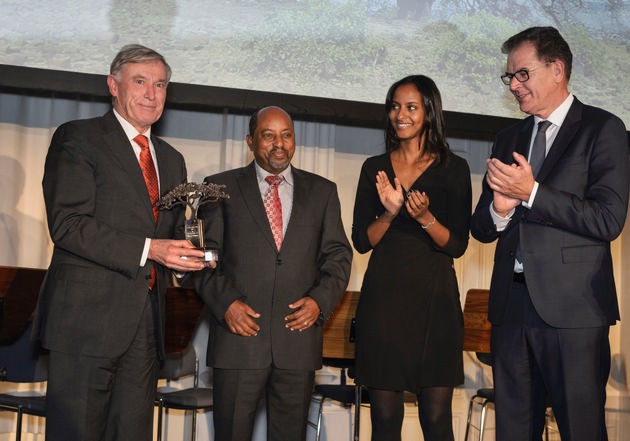 Während einer Feierstunde zum 35-jährigen Bestehen der Stiftung Menschen für Menschen - Karlheinz Böhms Äthiopienhilfe wurde am Samstag (12. November 2016) zum ersten Mal der Karlheinz-Böhm-Preis verliehen. Den Preis erhielt Horst Köhler, Bundespräsident a.D., für sein Engagement für die Menschen in Afrika. Die Laudatio hielt Dr. Gerd Müller, Bundesminister für wirtschaftliche Zusammenarbeit und Entwicklung. Der Preis, der nicht dotiert ist, wurde Horst Köhler durch Berhanu Negussie, dem Landesrepräsentanten von Menschen für Menschen in Äthiopien überreicht. Berhanu Negussie hat von Anfang an Karlheinz Böhm in Äthiopien begleitet.