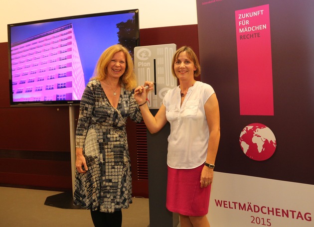 Schauspielerin Marion Kracht, die sich seit Jahren für Plans "Because I am a Girl"-Kampagne für Mädchenrechte einsetzt, drückte zum Auftakt einer bundesweiten Beleuchtungsaktion zum Welt-Mädchentag mit Staatssekretär Silberhorn symbolisch den Starthebel, um den Sitz des Entwicklungsministeriums, das elf Stockwerke hohe "Europahaus" im Herzen Berlins, in leuchtendes Pink zu tauchen. "Die Benachteiligung von Mädchen kennt viele Gesichter - mit dem Report verleiht Plan ihnen eine Stimme. Ihre Geschichten und Schicksale überzeugen uns alle davon, dass wir sie in Zukunft noch gezielter fördern müssen, damit die Überwindung der Armut gelingt", sagt Marion Kracht.