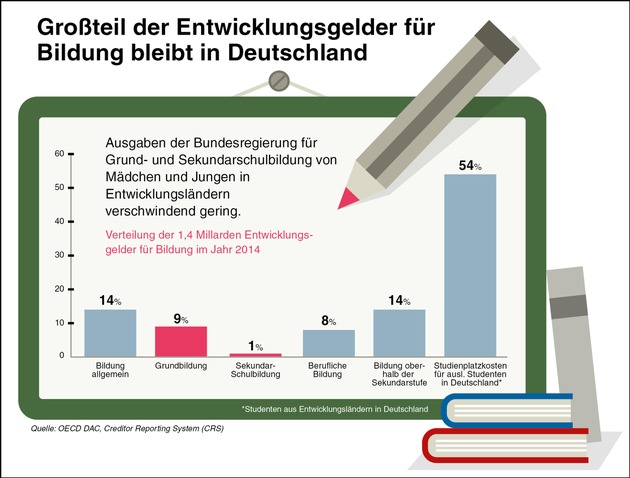 Problematisch ist dem Bericht zufolge auch, dass nur ein Viertel der Projekte mit Fokus auf Mädchen in den ärmsten Ländern durchgeführt werden. In afrikanischen Ländern südlich der Sahara wurden Programme, die speziell Mädchen fördern, sogar mehr als halbiert. Maike Röttger sieht darin eine weitere Gefahr: "Mädchen in Afrika sind die Leidtragenden dieser falschen Politik. Während die Bildungsförderung für Mädchen im Nahen und Mittleren Osten steigt, geht sie in Afrika südlich der Sahara, eine der ärmsten Regionen der Welt, zurück. Das ist eine riskante Umverteilung, die zwar die Krise in einer Region entschärfen kann, aber in Afrika eine neue provoziert, die zu neuen Flüchtlingsströmen führen könnte."