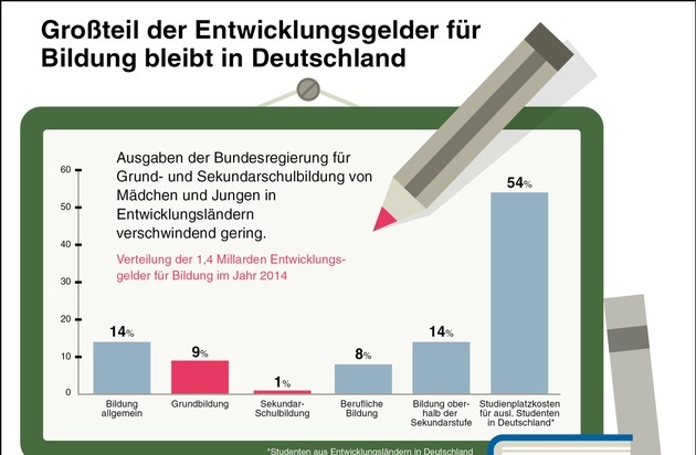Maike Röttger: "Die Bilanz ist ernüchternd. Von den 1,4 Milliarden bleiben nur 126 Millionen Euro für Entwicklungsländer für Grundbildung übrig, der größte Teil des Bildungsbudgets geht in Studienplatzkosten ausländischer Studierender hierzulande. An Millionen Mädchen in Entwicklungsländern, die gar keine Möglichkeit haben, zur Grundschule zu gehen, geschweige eine Universität zu besuchen, geht das komplett vorbei. Betroffen von dieser falschen Priorisierung sind vor allem Mädchen in der Subsahara-Region. Die Bundesregierung kommt ihren eigenen Verpflichtungen nicht nach. Sie muss einen Plan vorlegen, wie sie die Finanzierung von Grundbildung in Entwicklungsländern signifikant erhöhen will."
