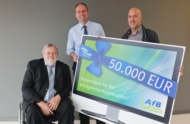 > Die gemeinnützige GmbH "Arbeit für Menschen mit Behinderung" bereitet IT-Altgeräte von easyCredit auf und verkauft diese weiter > 50.000 Euro aus IT-Verkauf werden als easyCredit-Spende durch die AfB reinvestiert in regionale Arbeitsplätze für Menschen mit Handicap