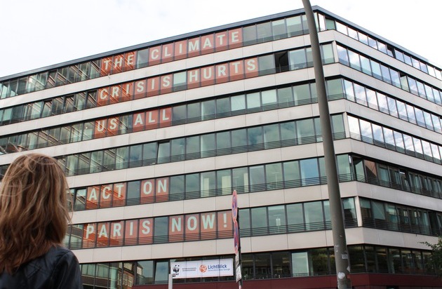 Im Vorfeld des G20-Gipfels am 7. und 8. Juli senden die Energiewendepartner WWF und LichtBlick eine klare Botschaft an die Gipfelteilnehmer aus aller Welt. In überdimensional großen Buchstaben ist an der Fassade der LichtBlick-Zentrale in Hamburg, am Zirkusweg 4 (Platz vor Astraturm), zu lesen: THE CLIMATE CRISIS HURTS US ALL. ACT ON PARIS NOW! (Die Klimakrise schadet uns allen. Das Pariser Abkommen jetzt umsetzen!)