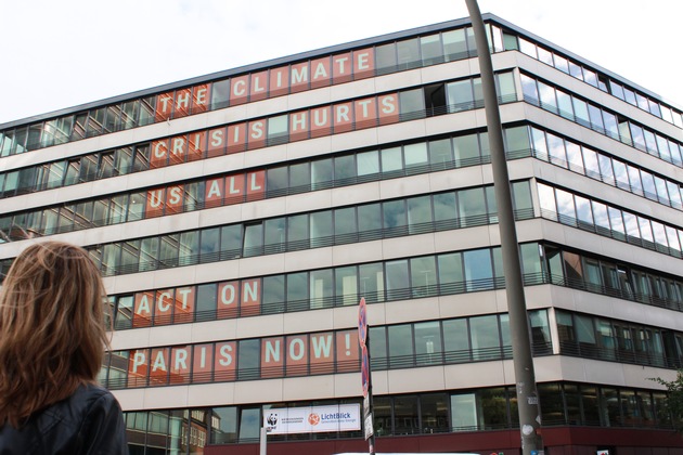 Im Vorfeld des G20-Gipfels am 7. und 8. Juli senden die Energiewendepartner WWF und LichtBlick eine klare Botschaft an die Gipfelteilnehmer aus aller Welt. In überdimensional großen Buchstaben ist an der Fassade der LichtBlick-Zentrale in Hamburg, am Zirkusweg 4 (Platz vor Astraturm), zu lesen: THE CLIMATE CRISIS HURTS US ALL. ACT ON PARIS NOW! (Die Klimakrise schadet uns allen. Das Pariser Abkommen jetzt umsetzen!)