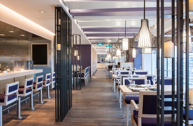 Im neuen Design erscheint auch das Sushi-Restaurant Sakura auf Deck 9: Durch ein neues Farbkonzept, den Einsatz eines warmen Violett-Farbtons, Holzlampen und Raumteiler inklusive integrierter LED-Kerzen wird das Ambiente einem japanischen Sushi-Restaurants gerecht.