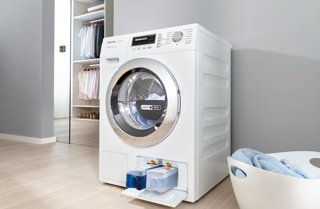 Ausstattungsabhängig lässt sich der WT1 über WLAN mit dem Internet vernetzen, per kostenfreier Miele-App und ohne zusätzliche Hardware. Geht in einer Kartusche das Waschmittel zur Neige, meldet sich TwinDos sogar automatisch auf dem Smartphone oder Tablet, bequeme Bestelloption inklusive. "Kein anderer Waschtrockner am Markt kann automatisch dosieren, und dies bei gleichzeitig kürzesten Programmlaufzeiten", resümiert Frank Jüttner.