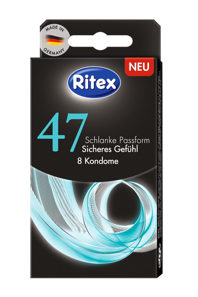 Beratungsstellen, wie z.B. Pro Familia, die durch ihren direkten Kontakt mit jugendlichen und erwachsenen Anwendern dieses Problem kennen, fordern seit Jahren, dass auch kleinere Kondome angeboten werden müssten. Zusammen mit Handelspartnern und Pro Familia hat Ritex das Thema aufgenommen und bietet ab dem 01. Oktober dieses Jahres das neue Kondom "47" an. Die Ritex Kondome "47" bieten mit ihrem Umfang von 94 statt 106 mm gerade bei schlankeren Penisgrößen einen angenehm festen Sitz und ein besonders sicheres Gefühl. Der Produktname "47" leitet sich von der Breite des flachliegenden Kondoms (=halber Umfang) ab.