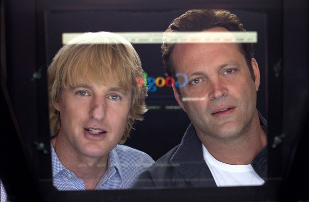 Im Bild: Nick (Owen Wilson,l.) und Billy (Vince Vaughn,r.) ergattern einen Praktikumsplatz bei einem Internetgiganten. Vom abgehalfterten Uhrenhändler zum hippen IT-Praktikanten: Wenn zwei für so eine Karriere verrückt genug sind, dann Vince Vaughn und Owen Wilson! Nachdem die Mittvierziger Billy und Nick ihre Jobs als Verkäufer verloren haben, beschließen sie, mit einem Praktikum bei einem angesagten Internet-Konzern nochmal durchzustarten. Dort erwartet sie harte Konkurrenz: Die Mit-Praktikanten sind jung, genial, hochmotiviert - und kennen im Kampf um eine der begehrten Festanstellungen kein Pardon. ProSieben zeigt "Prakti.com" am Samstag, 30. Januar 2016, um 20:15 Uhr zum ersten Mal im Free-TV.