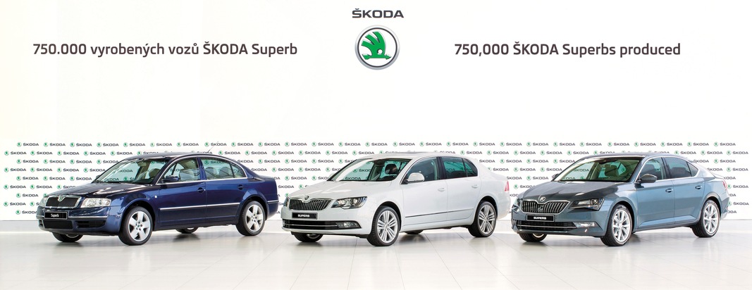 - Dritte SKODA Superb-Generation markiert Start in eine neue ÄraSKODA hat den 750.000sten SKODA Superb produziert. Das Jubiläumsfahrzeug rollte im SKODA Werk Kvasiny vom Band. Seit 2001 ist der SKODA Superb das Spitzenmodell des tschechischen Autoherstellers. Im Juni dieses Jahres geht die dritte Modellgeneration an den Start. Der neue SKODA Superb revolutioniert die SKODA Formensprache, erreicht neue Dimensionen in Sachen Komfort und Technik und ist der beste SKODA aller Zeiten.