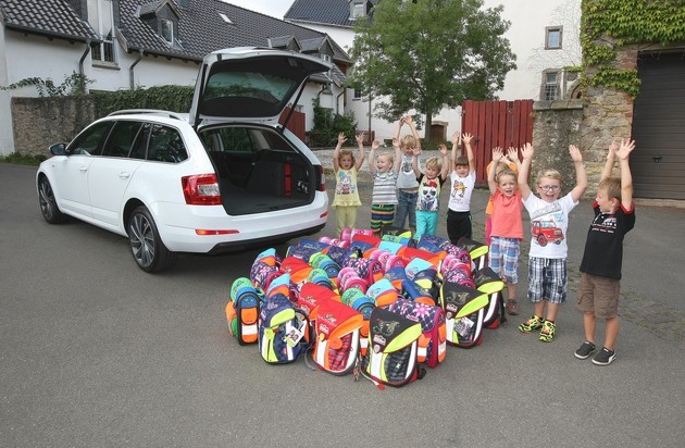 Für das lustige Video zur Facebook-Aktion #DuPackstDas waren 14 Kinder mit vollem Einsatz dabei, um das Gepäckabteil eines SKODA Octavia Combi randvoll mit Schulranzen zu beladen. Keine leichte Aufgabe: Mit einem Volumen von 610 Litern - bei umgeklappter Rücksitzbank wären es sogar 1.740 Liter - weist der Bestseller den mit Abstand größten Kofferraum in seinem Segment auf. Während SKODA Fans unter www.facebook.com/skodade fleißig Beiträge ihrer persönlichen Packgeschichten posten, befinden sich die fabrikneuen Scout Schulranzen bereits auf dem Weg nach Ludwigshafen.