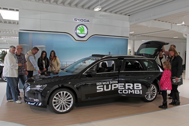 - Einstieg in die SKODA Superb Combi-Welt beginnt bei 25.590 EuroFast 100.000 Besucher überzeugten sich am vergangenen Wochenende in den rund 580 deutschen SKODA Standorten persönlich von den vielfältigen Qualitäten des neuen SKODA Superb Combi. Noch während seines Premierenauftritts auf der Internationalen Automobil-Ausstellung (IAA) in Frankfurt startete das elegante Raumwunder nun auch bei den Händlern durch. Der neue SKODA Superb Combi begeistert Besucher mit dynamisch-elegantem Design, innovativen Assistenzsystemen für Sicherheit und Komfort sowie modernster Antriebs- und Infotainmenttechnologie.