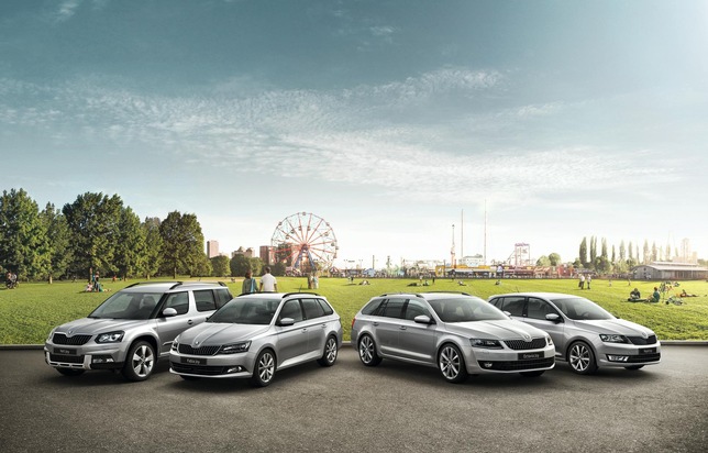 - Vier Baureihen der Marke in schickem Gewand: SKODA Fabia, Rapid,