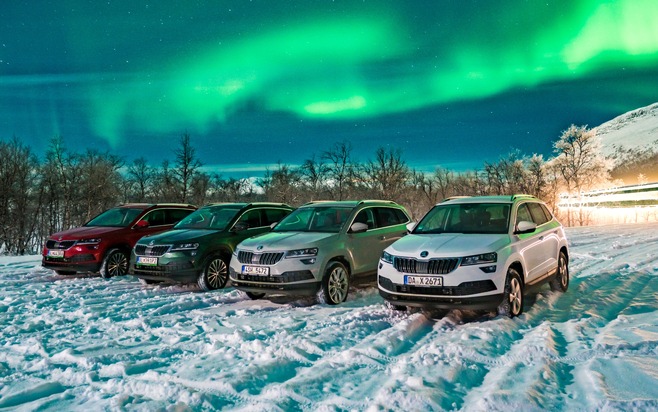 Mit den Wunschzetteln im Gepäck starteten je zwei SKODA KAROQ aus der moldawischen Hauptstadt Chisinau und aus Berlin auf ihre Arktis-Tour. In Warschau trafen sie sich und setzten ihre Tour Richtung Norden fort. Die Route führte die Kompakt-SUVs zum Nordkap, dem nördlichsten Punkt Europas. Anschließend lieferte die KAROQ-Karawane die Wunschzettel im Weihnachtsdorf bei Rovaniemi in der Nähe des Polarkreises ab. Insgesamt legten die vier KAROQ dabei eine Strecke von 23.400 Kilometern zurück.