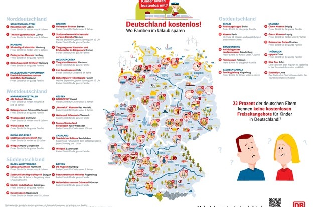Prozent) am wichtigsten.Die Infografik "Deutschland kostenlos - Wo Familien im Urlaub sparen" steht unter folgendem Link als Gesamtgrafik sowie für die Regionen Nord, Ost, Süd und West zum Download zur Verfügung: www.bahn.de/kinder