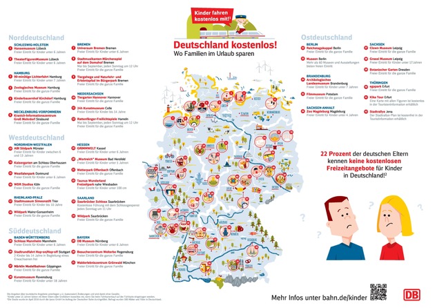 Prozent) am wichtigsten.Die Infografik "Deutschland kostenlos - Wo Familien im Urlaub sparen" steht unter folgendem Link als Gesamtgrafik sowie für die Regionen Nord, Ost, Süd und West zum Download zur Verfügung: www.bahn.de/kinder
