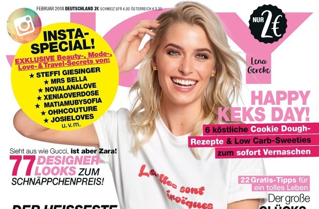 Lena Gercke hat fast zwei Millionen Instagram-Abonnenten, begehrte Model-Jobs, eine eigene Mode-Kollektion, eine Make-up-Linie und außerdem eine eigene TV-Show. Trotz ihres Mega-Erfolgs ist die 29-Jährige charmant und bodenständig - wie sie im exklusiven Interview mit JOY beweist! In der Insta-Special Sonderausgabe von JOY (2/2018, EVT 05.01.) ziert Lena - die inzwischen viel mehr als "nur" ein Model, nämlich eine Millennial-Influencerin ist - das Cover - und zeigt sich im Interview von ihrer ganz privaten Seite: Sie spricht darüber, wie aus der schüchternen "GNTM"-Gewinnerin von früher eine echte Bosslady wurde, über den Instagram-Hype und warum es ihr so wichtig ist, sich auch mal eine Pause von Social Media zu gönnen.