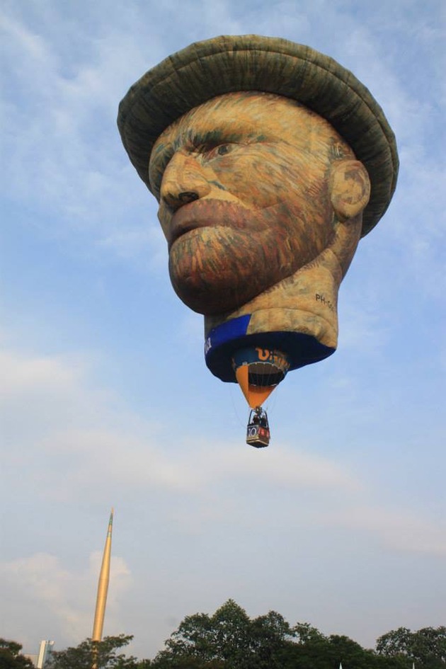 "Das ist eine der imposantesten Sonderformen der Welt", weiß Hermann Löser, Geschäftsführer der Warsteiner International Montgolfiade GmbH zu berichten. "Zum ersten Mal habe ich den Künstlerkopf in Albuquerque gesehen. Ein unheimlich aufwendiges Werk, das 2003 zum 150. Geburtstag von van Gogh entstanden ist", fügt er an. Bei einem Volumen von rund 4.000 Kubikmetern wiegt die Ballonhülle 270 Kilogramm. Der Ballon besteht aus mehr als 1.000 Einzelteilen und über 2.000 Metern Ballonstoff, der zuvor computergesteuert und originalgetreu nach des Künstlers Pinselstrich bemalt wurde. Um die Form des Gesichtes so naturgetreu wie möglich in den Heißluftballon zu integrieren, wurden im Inneren Dutzende von Membranen verwendet, um Nasenlöcher, Augäpfel, Ohren und Bart in Position zu halten. Allein die Hutkrempe wurde aus 800 Teilen zusammengesetzt.
