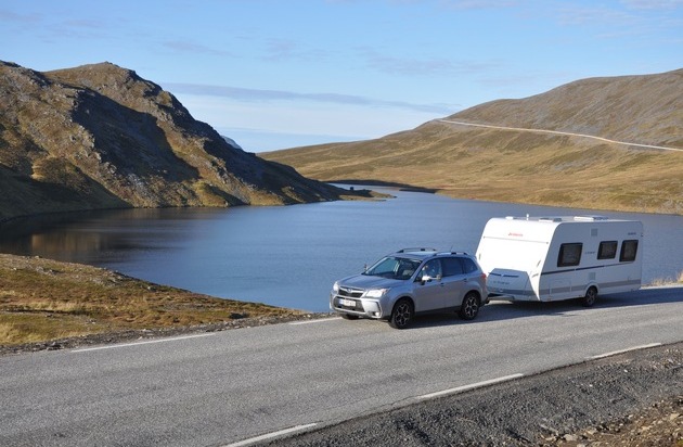 Neben der zusätzlichen Länge sind Wohnwagen und andere Aufbauten meist auch höher als das Zugfahrzeug. Dadurch vergrößert sich die Angriffsfläche für Seitenwind, insbesondere auf Brücken und nach dem Passieren von Lkw müssen Autofahrer mit Verwirbelungen rechnen. Der spürbare Druck von der Seite, aber auch plötzliche Ausweichmanöver und überhöhte Geschwindigkeit bringen Anhänger mitunter ins Schlingern. Ein Tritt auf die Bremse ist in einer solchen Situation die richtige Reaktion, Gegenlenken und Gasgeben sind dagegen gefährlich. Zusätzliche Sicherheit schafft ein Anhänger-ESP, das dem Pendeln entgegenwirkt und für immer mehr Modelle erhältlich ist. Der SUV-Klassiker Subaru Forester zum Beispiel verfügt in allen Ausstattungsvarianten serienmäßig über ein solches Gespann-Stabilisierungssystem: Seine elektronisch gesteuerte Fahrdynamikregelung bremst gezielt einzelne Räder, die das Schlingern eines Anhängers verhindern und das Gespann stabilisieren. Im Notfall greift zudem ein Bremsassistent ein und bringt das Fahrzeug komplett zum Stillstand.