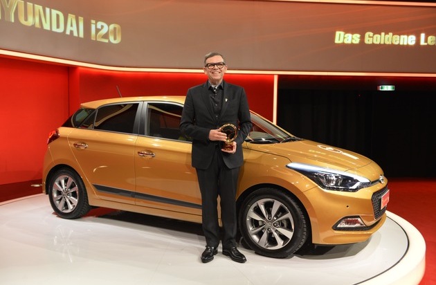 Das "Goldene Lenkrad 2015" geht an den Hyundai i20: Der Kleinwagen hat die namhafte Leserwahl in seiner Fahrzeugklasse gewonnen und sichert sich damit eine der begehrtesten Auszeichnungen in der Branche. Der Preis wurde gestern Abend in Berlin an Peter Schreyer, Präsident und Chefdesigner der Hyundai Motor Group, übergeben. Der Kleinwagen setzte sich in seiner Klasse gegen Mitbewerber wie den Skoda Fabia und den Opel Karl durch. Für Hyundai ist es der erste Triumph beim Goldenen Lenkrad.