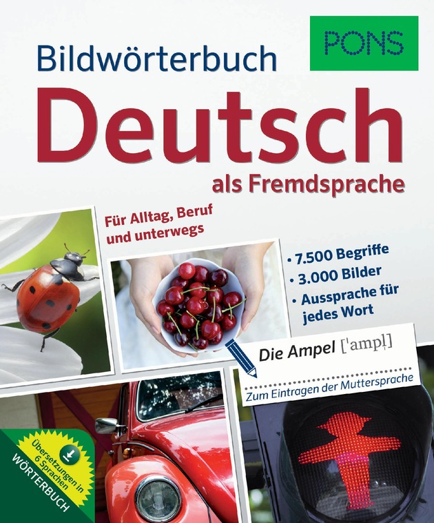 Sprachen lernen mit Wörterlisten und Regeln ist gut. Sprachen lernen mit Wörterlisten, Regeln und Bildern ist besser. Denn je mehr Sinne angesprochen werden, desto schneller und einfacher bleibt die Information im Gedächtnis. Der Sprachenprofi PONS setzt auch im Frühjahr auf dieses Erfolgsrezept und erweitert seine Reihen "Grammatik in Bildern" und die "Bildwörterbücher" um zusätzliche Sprachen. Besonders hilfreich für alle Zuwanderer: Deutsch als Fremdsprache in Bildern. Ab sofort bei PONS.