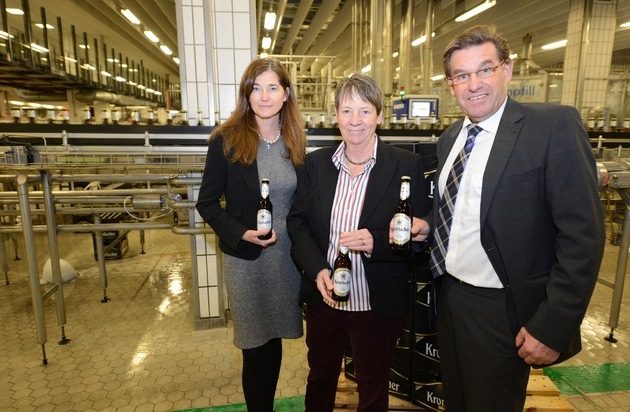 "Die Ausrichtung der Gebindepolitik auf Mehrweg ist ein konkreter Beitrag zum Schutz von Umwelt und Klima", so Bernhard Schadeberg. "Als familiengeführtes Unternehmen mit starker Verbundenheit zur Region stellen wir uns tagtäglich dem Anspruch, nachhaltig zu wirtschaften. Wir sind uns sicher, dass wir damit auf dem richtigen Weg sind." "Das Umweltengagement der Krombacher Brauerei ist beispielhaft, sie hat ein auf vielen Ebenen bemerkenswertes Nachhaltigkeitskonzept. Sei es der schonende Umgang mit den Ressourcen, das soziale Engagement, das in diesem Jahr neu geplante Blockheizkraftwerk oder auch das Engagement pro Mehrweg", zeigte sich Bundesumweltministerin Dr. Hendricks sichtlich beeindruckt von einer der größten und modernsten Brauereien Deutschlands. In diesem Zusammenhang wies DUH-Bundesgeschäftsführer Jürgen Resch die Umweltministerin auf die besondere Bedeutung des deutschen Mehrwegsystems für Umweltschutz, Getränkevielfalt und regionale Arbeitsplätze hin und forderte sie mit Nachdruck dazu auf, sich aktiv für dessen Erhalt einzusetzen.