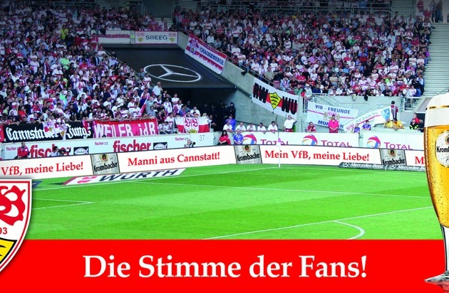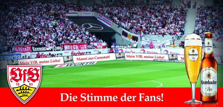 Bei der Aufholjagd um die letzten entscheidenden Punkte braucht der VfB Stuttgart nicht nur Wille und Kampfgeist, sondern auch die Unterstützung der Fans. Um diesen eine Stimme zu geben, hat sich die Krombacher Privatbrauerei, seit 2011 Partner des VfB, nun etwas ganz Besonderes einfallen lassen - eine Aktion, die es in Deutschland bisher noch nicht gegeben hat. Krombacher verzichtet beim nächsten Heimspiel gegen Mainz auf seinen Werbeplatz auf der LED-Bande und bietet den Fans die Möglichkeit, ihre persönliche Botschaft an den VfB zu richten.
