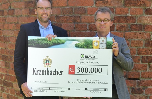 Doch es gibt noch einiges zu tun. "Um die Hohe Garbe weiter zu einer naturnahen, ungestörten Auenwildnis zu entwickeln und gleichzeitig viele Menschen an das Thema Auenschutz heranzuführen, ist die die Unterstützung von Krombacher sehr hilfreich", so Olaf Bandt, Bundesgeschäftsführer des BUND, bei der symbolischen Scheckübergabe. Auch die Krombacher Brauerei ist sich der großen Bedeutung der Hohen Garbe für den Naturschutz bewusst. "Wie keine andere Brauerei setzt sich die Krombacher Brauerei bekanntermaßen aktiv für den Natur- und Umweltschutz ein. Jahr für Jahr gewinnen bei Aktionen nicht nur die Verbraucher, sondern es profitiert auch die Natur. So auch in diesem Jahr bei der Krombacher Kronkorkenaktion", erzählt Wolfgang Schötz, Leiter Vertriebsmarketing der Krombacher Brauerei und verantwortlich für die Umsetzung der Natur- und Umweltschutzprojekte. "Bereits im vergangenen Jahr hat mich das Projekt des BUND nachdrücklich beeindruckt. Die Bedeutung der Auenwälder wird unterschätzt. Wir sind froh, hier einen Beitrag leisten zu können - für die vielen bedrohten Tierarten, aber auch zum Hochwasserschutz."