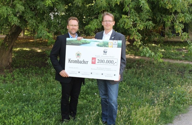 Mit einem Betrag von 500.000 Euro unterstützt die Krombacher Brauerei im Rahmen der diesjährigen Krombacher Kronkorkenaktion wiederholt Projekte renommierter, unabhängiger Naturschutzorganisationen in Deutschland. Denn wie in den vergangenen Jahren soll auch 2015 der Naturschutzgedanke nicht zu kurz kommen. Nachdem die erste Spende in Höhe von 300.000 EUR bereits an den BUND für das Projekt "Lebendige Auen für die Elbe 2.0" übergeben wurde, konnte sich jetzt der WWF über eine Spende in Höhe von 200.000 Euro zur Unterstützung des Projektes Wildnisentwicklung in der Zerweliner Heide freuen.