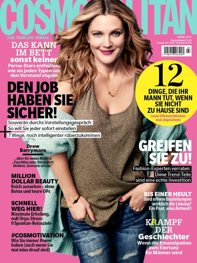 Drew Barrymore in COSMOPOLITAN: "Ich habe mich dafür entschieden, glücklich zu sein. Glück ist eine Wahl."