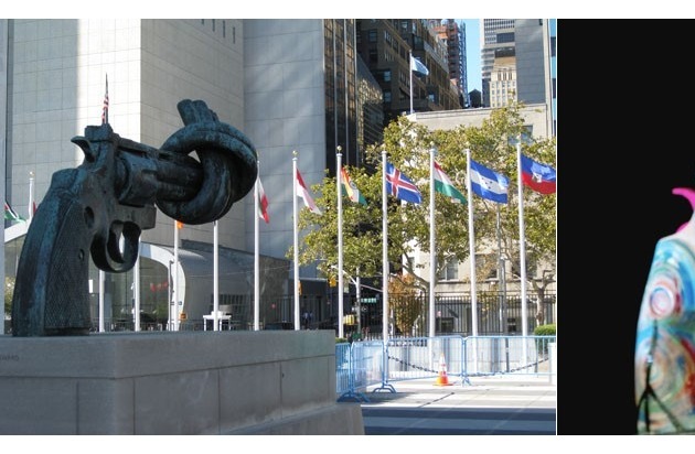 Günther Grass stellte die Knotted Gun-Skulptur auf eine Stufe mit Werken von Goya und Dürer und gab in dem Artikel "Der Knoten im Revolverlauf" seiner Hoffnung Ausdruck, dass die Skulptur uns ermahnt alles zu unternehmen, um Gewalt zu vermeiden. Und Kofi Anan (Ex-UN Generalsekretär und Nobelpreisträger) sagte: "Mit der Non-Violence Skulptur wurde den United Nations nicht nur eine wertgeschätzte Stiftung zuteil, sondern sie hat auch das Bewusstsein der Menschheit bereichert, indem sie mit wenigen einfachen Kurven das größte Gebet aller Menschen auf einen Nenner bringt, die nicht für den Sieg, sondern für Frieden beten." (Übersetzung aus dem Englischen)