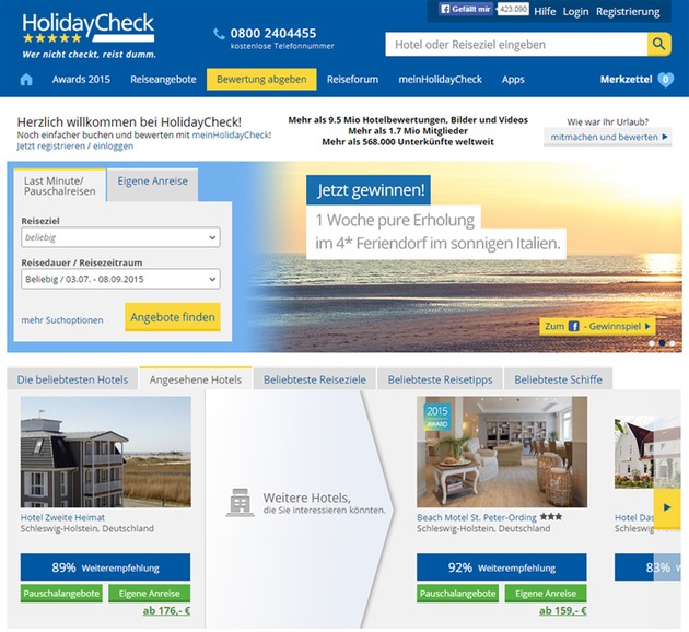 Den Testsieg sicherte sich Holidaycheck.de mit der besten Kombination aus guten Preisen, Bedienkomfort, Transparenz und Sicherheit. Im Vergleich zum Vorjahr hat das Portal einige Funktionen verbessert oder ausgebaut: "So funktioniert etwa das Speichern der eingegebenen Reisedaten nun deutlich zuverlässiger", sagt Bruns.